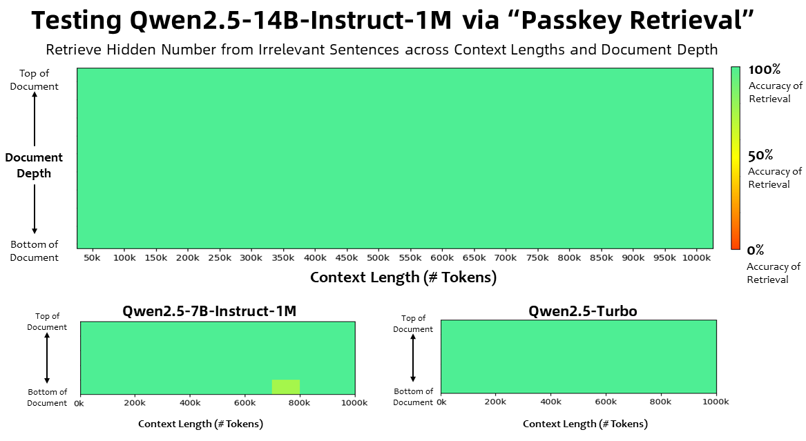 Open-Source Models: Qwen2.5-7B and Qwen2.5-14B-Instruct-1M models handle 1M-token contexts with superior accuracy.